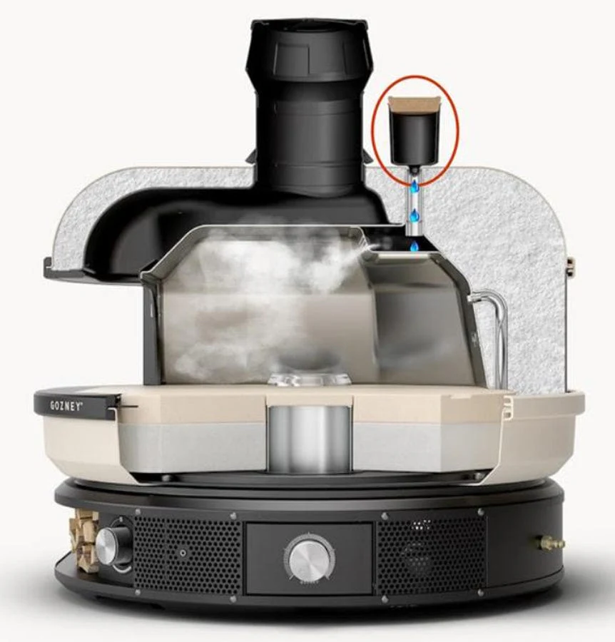 Some pizza ovens offer a purpose-built solution for controlled steam injection. For example, the original Gozney Dome (Gen 1) is compatible with the Dome Steam Injector. This clever little accessory allows owners of the original Dome to add a specific amount of water to the funnel, and it then injects just the right amount of moisture into the oven to create steam on entry. While the original Dome has been discontinued, the Steam Injector is still available for customers who already own this earlier model.