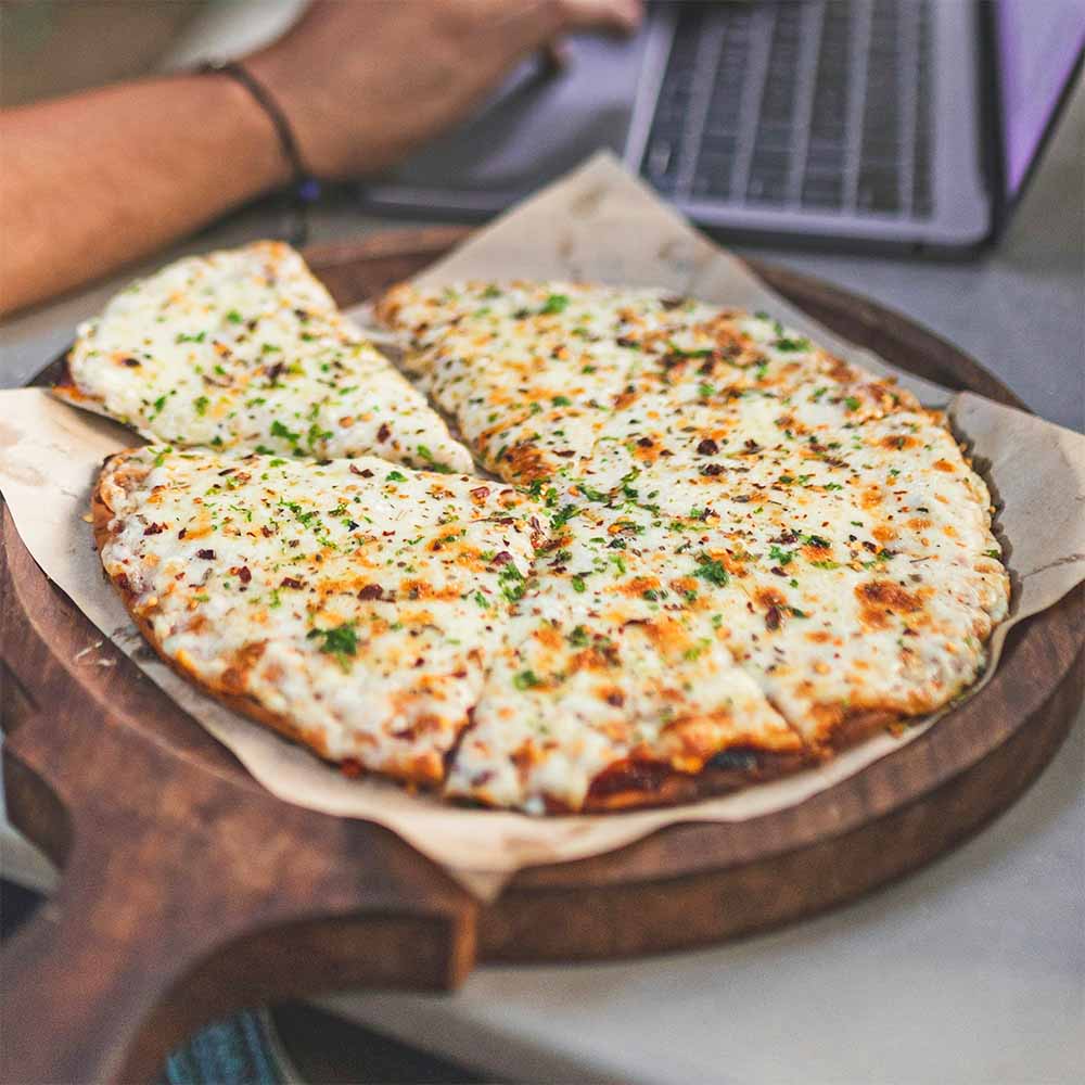 Top tip: for a spicy kick to your cheesy garlic bread pizza, sprinkle some chilli flakes on top!
