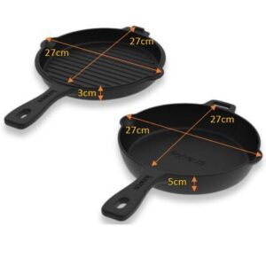A standout feature of these cast iron pans is their ability to maintain consistent heat, ensuring that your food cooks evenly and retains its natural flavours. Additionally, the pans develop a seasoned layer over time, enhancing their non-stick properties and increasing efficiency with each use.