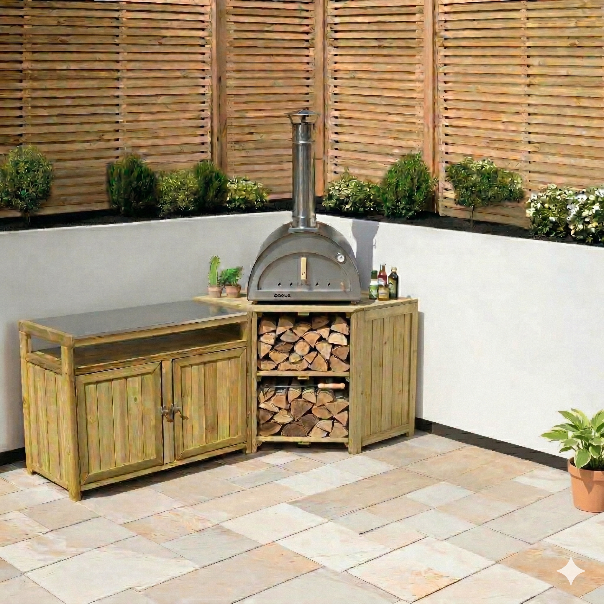 The corner unit is a two shelf storage unit which is very popular to turn into a wood storage area when cooking on a traditional wood fired pizza oven.