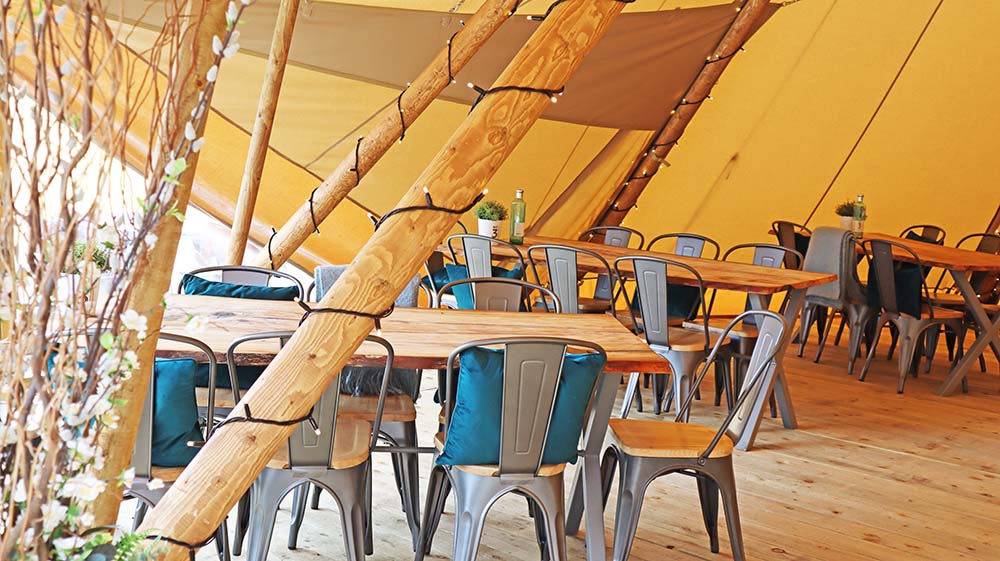 An alfresco dining experience with an outdoor kitchen fitted out with an Igneus Ceramiko Pro 1200 wood-fired pizza oven was the proposed solution. The oven installation took two days to complete and now along with the fabulous tepee it is now the focal point of the pub.